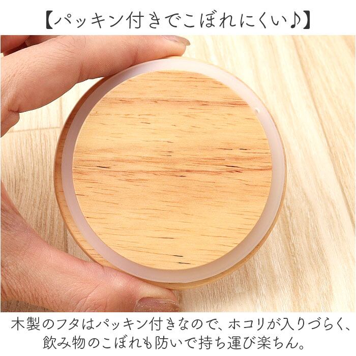 ・木製のフタはパッキン付きなので、ホコリが入りづらく、飲み物のこぼれも防いで持ち運び楽ちん。