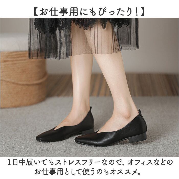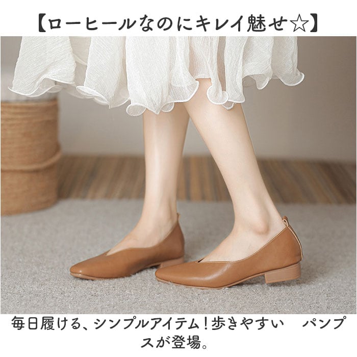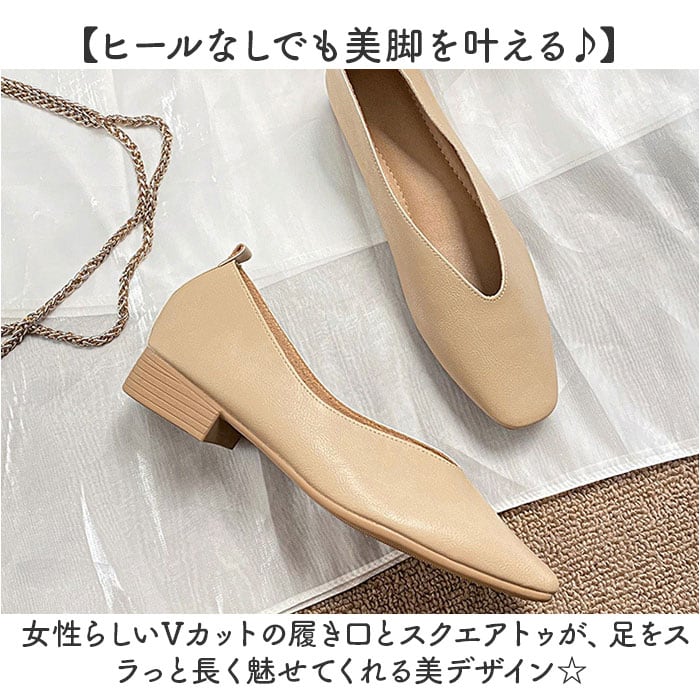 ・女性らしいVカットの履き口とスクエアトゥが、足をスラっと長く魅せてくれる美デザイン☆