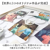 ・6個のハート型クリップに、写真やポストカード、切り抜きなどを挿んでディスプレイ☆