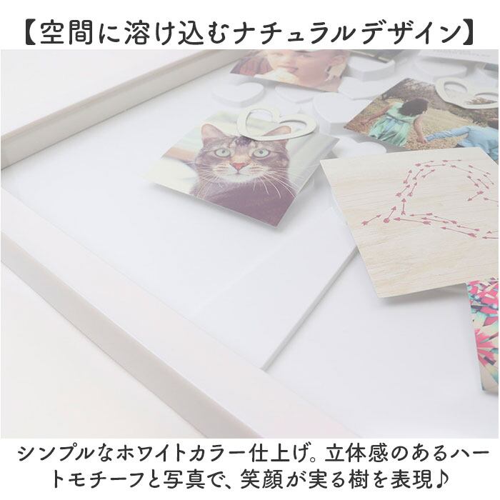 ・シンプルなホワイトカラー仕上げ。立体感のあるハートモチーフと写真で、笑顔が実る樹を表現♪