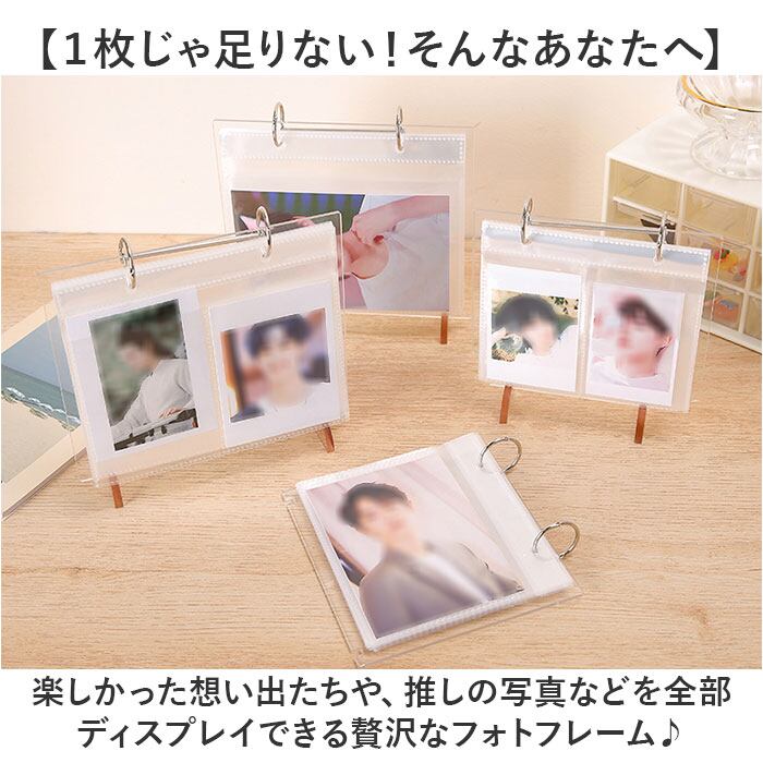 アルバム L判 フォトスタンド 通販 フォトスタンドアルバム 写真立て 写真 フォト 収納 ポケット式アルバム L判サイズ リング形式 リング ポケット式 アクリル クリア 透明 卓上 机上 デスク 机 ギフト シンプル カレンダー風 日用品雑貨