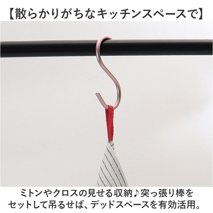 ・ミトンやクロスの見せる収納♪突っ張り棒をセットして吊るせば、デッドスペースを有効活用。