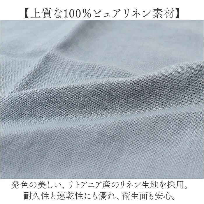 ・発色の美しい、リトアニア産のリネン生地を採用。耐久性と速乾性にも優れ、衛生面も安心。