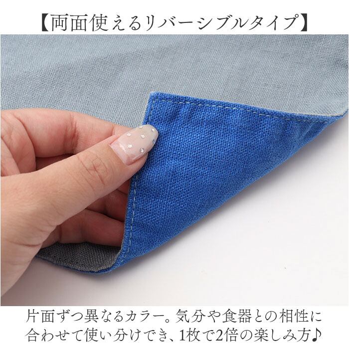 ・片面ずつ異なるカラー。気分や食器との相性に合わせて使い分けでき、1枚で2倍の楽しみ方♪