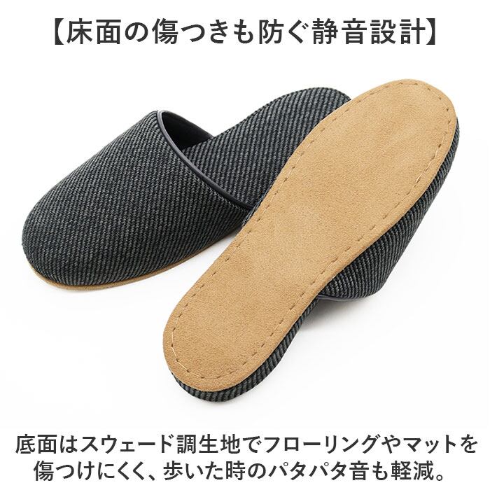 ・底面はスウェード調生地でフローリングやマットを傷つけにくく、歩いた時のパタパタ音も軽減。