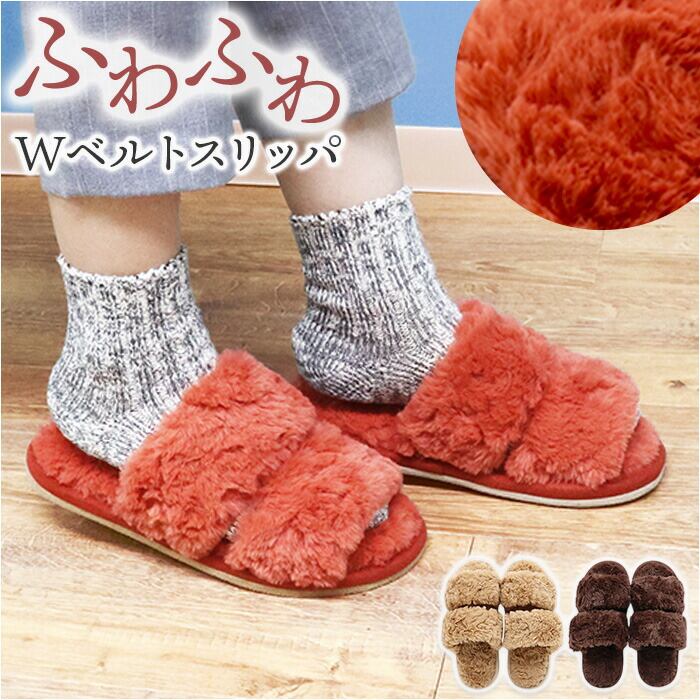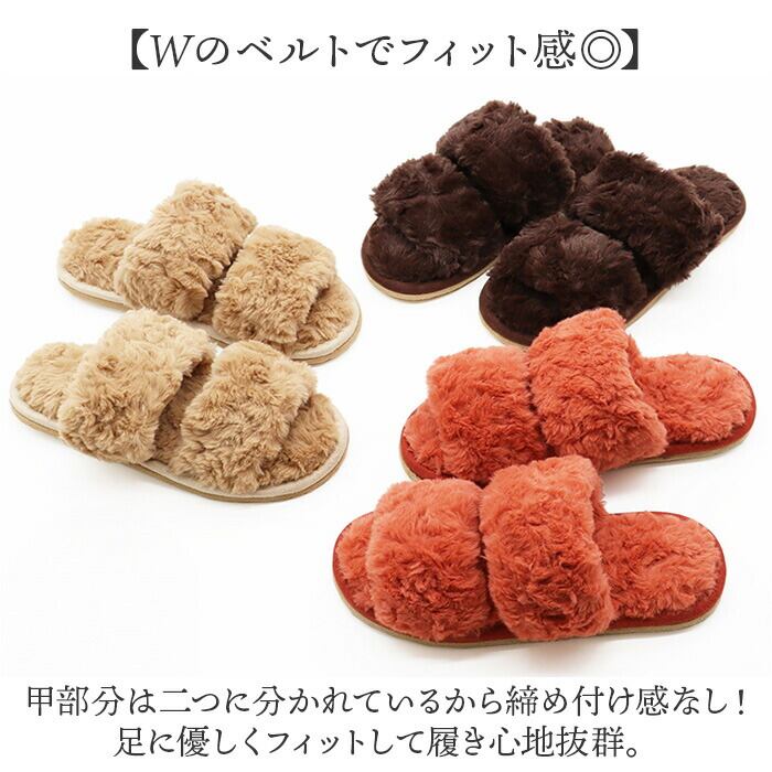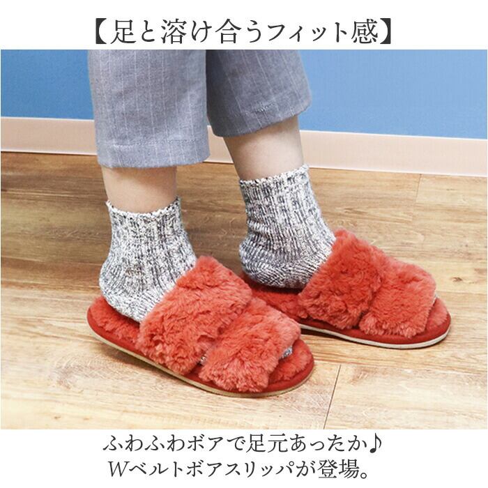 ・ふわふわボアで足元あったか♪Wベルトボアスリッパが登場。