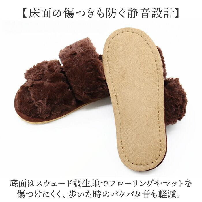 ・底面はスウェード調生地でフローリングやマットを傷つけにくく、歩いた時のパタパタ音も軽減。