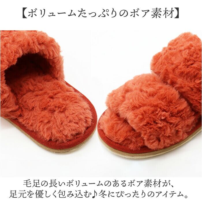 ・毛足の長いボリュームのあるボア素材が、足元を優しく包み込む♪冬にぴったりのアイテム。