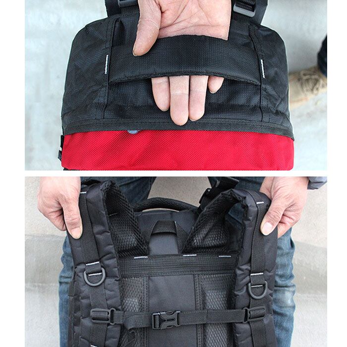 ・重さから身体を守るクッションを搭載。肩、背中、腰、脇腹と負担のかかりやすい場所をカバー