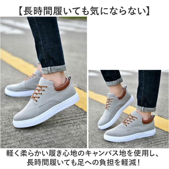 ・軽く柔らかい履き心地のキャンバス地を使用し、長時間履いても足への負担を軽減!