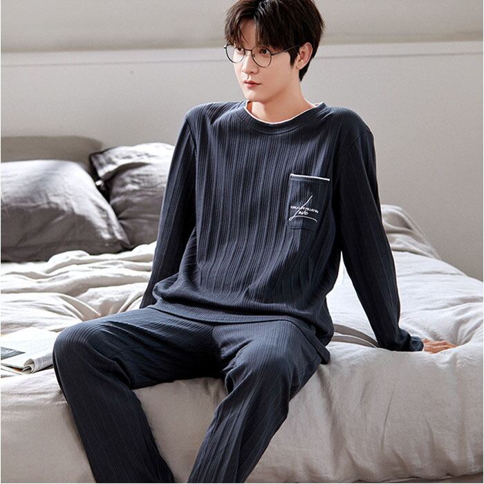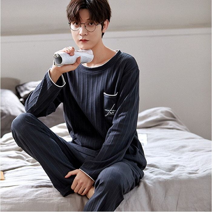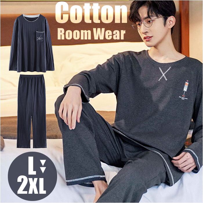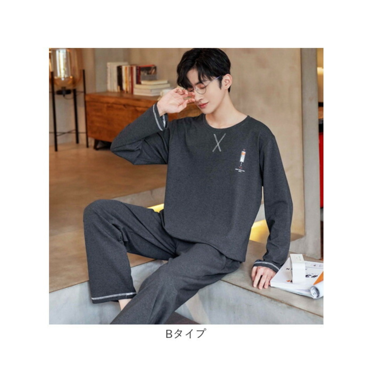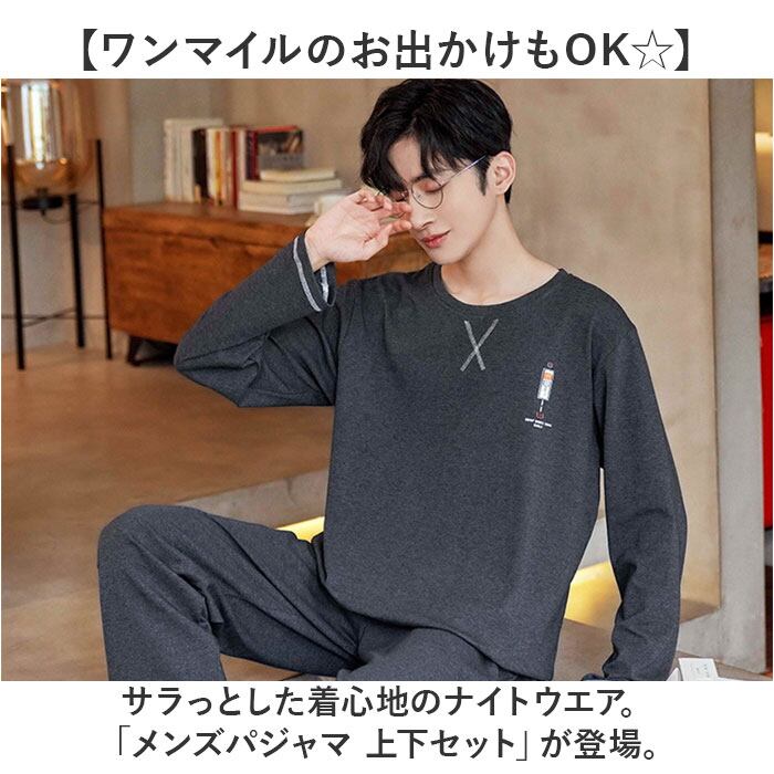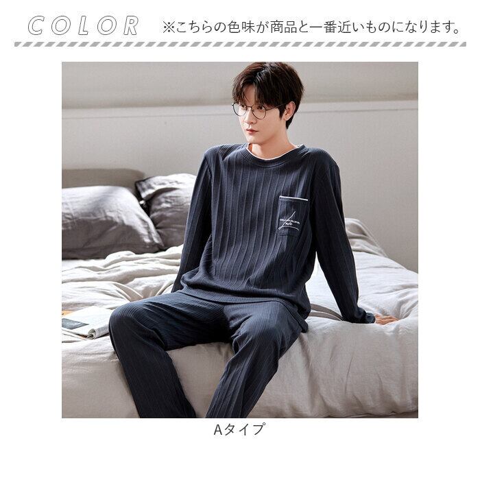 パジャマ メンズ 上下セット 長袖 通販 ルームウェア 部屋着 寝巻き 寝巻 ナイトウェア メンズパジャマ 長袖Tシャツ 長ズボン ロングパンツ クルーネック セットアップ 丸首 上下 セット 薄手 ゆったり 無地 シンプル カジュアル 男性 春 秋