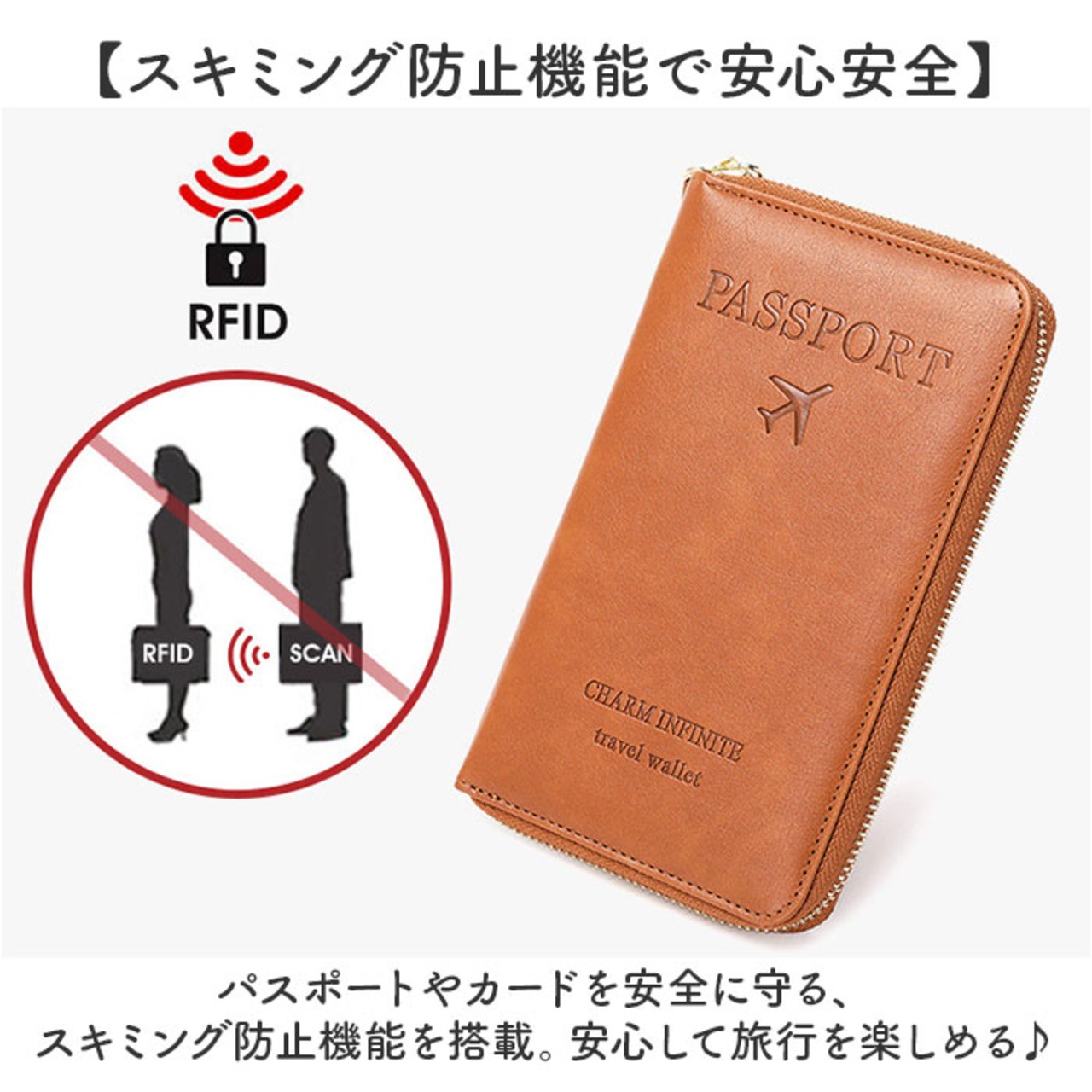 ・パスポートやカードを安全に守る、スキミング防止機能を搭載。安心して旅行を楽しめる♪