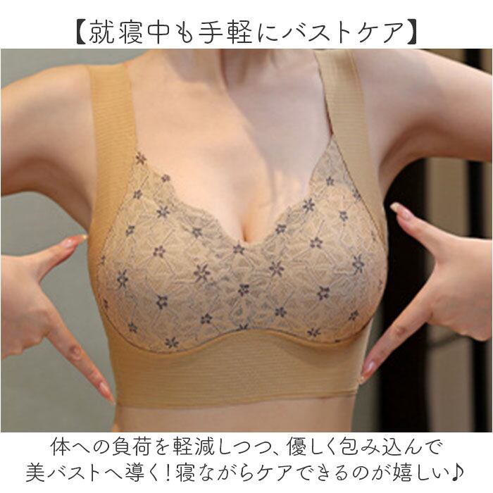 ナイトブラ 昼夜兼用 通販 ノンワイヤー ブラ おやすみブラ ブラジャー 下着 肌着 ホックなし カップ付き 柔らかい 脇高 シームレス 通気性 スポーツブラ スポブラ 切り替え レース U字バック 運動 産前 産後 かわいい おしゃれ インナー