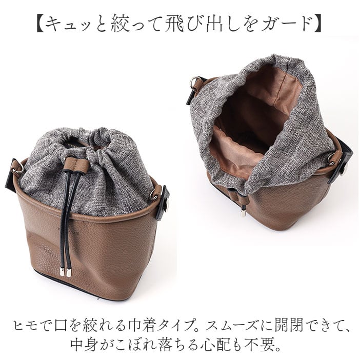 ・ヒモで口を絞れる巾着タイプ。スムーズに開閉できて、中身がこぼれ落ちる心配も不要。