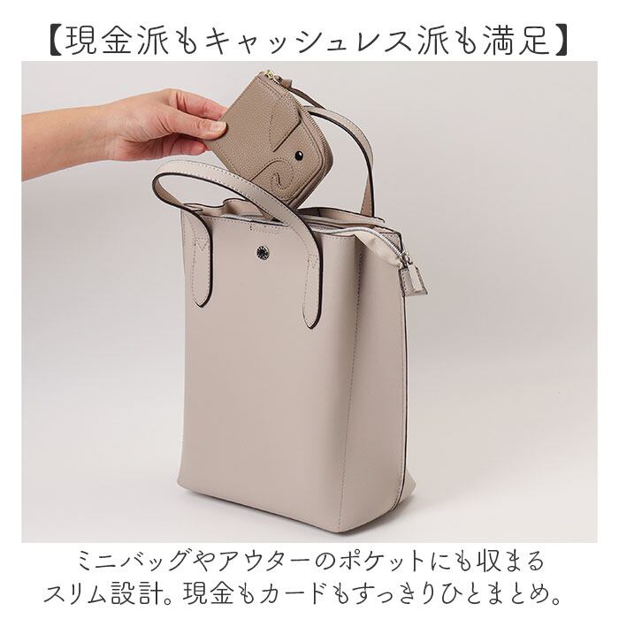 ・ミニバッグやアウターのポケットにも収まるスリム設計。現金もカードもすっきりひとまとめ。