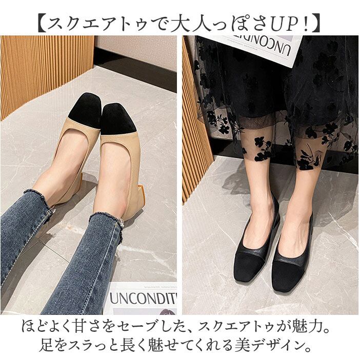 ・ほどよく甘さをセーブした、スクエアトゥが魅力。足をスラっと長く魅せてくれる美デザイン。