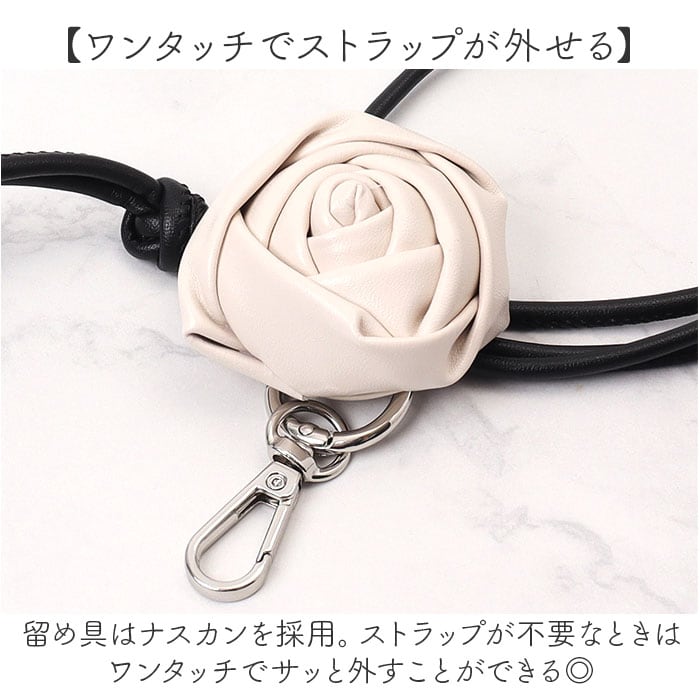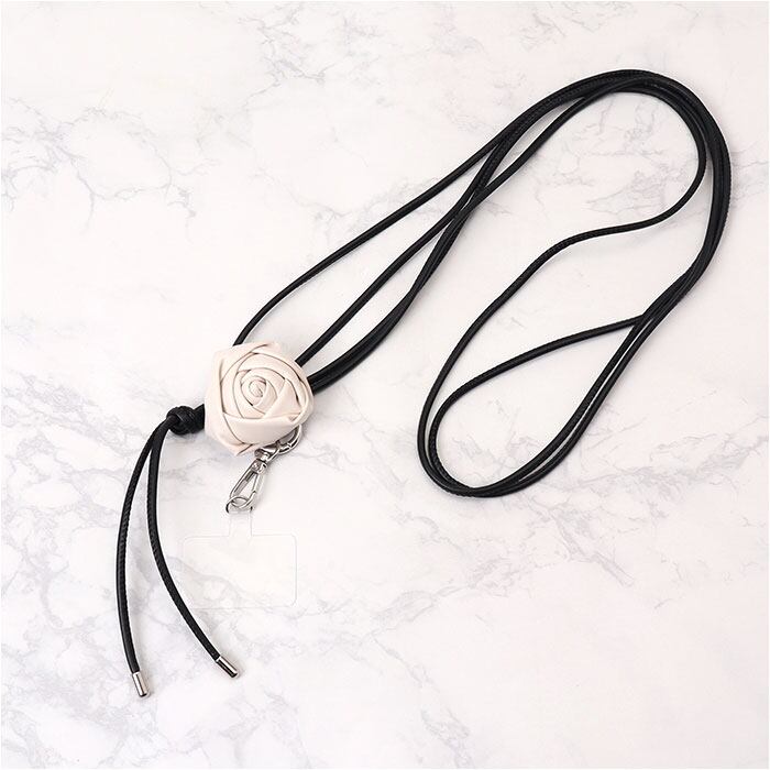 ・レザー風のコードにローズのモチーフがポイント。スマホショルダーストラップが発売。