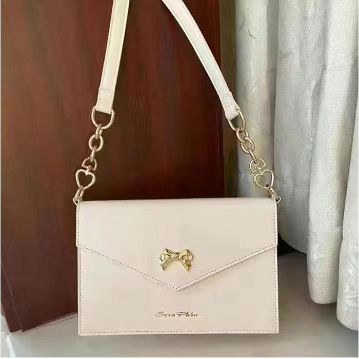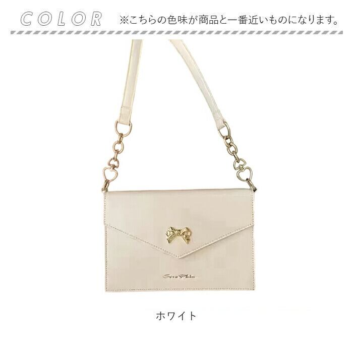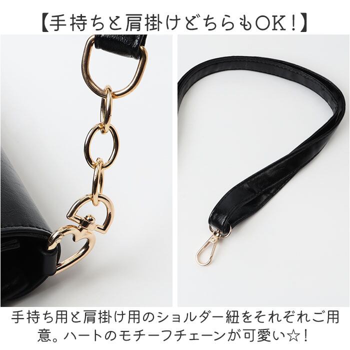 ・手持ち用と肩掛け用のショルダー紐をそれぞれご用意。ハートのモチーフチェーンが可愛い☆!