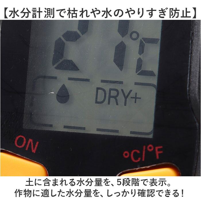 ・土の温度は摂氏と華氏の両方で計測。-9度から50度まで測定可能。
