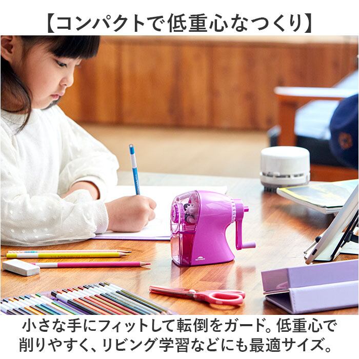 ・小さな手にフィットして転倒をガード。低重心で削りやすく、リビング学習などにも最適サイズ。