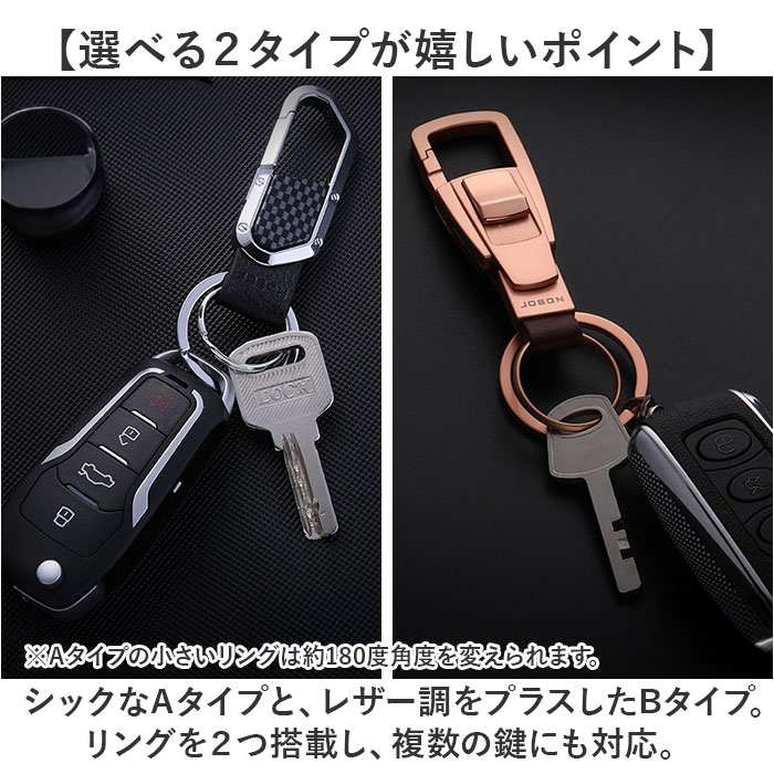 ・シックなAタイプと、レザー調をプラスしたBタイプ。リングを2つ搭載し、複数の鍵にも対応。