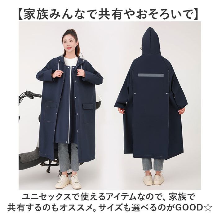 ・歩いている時はもちろん、自転車やバイクに乗った姿勢でも濡れにくい長めの丈感がポイント。