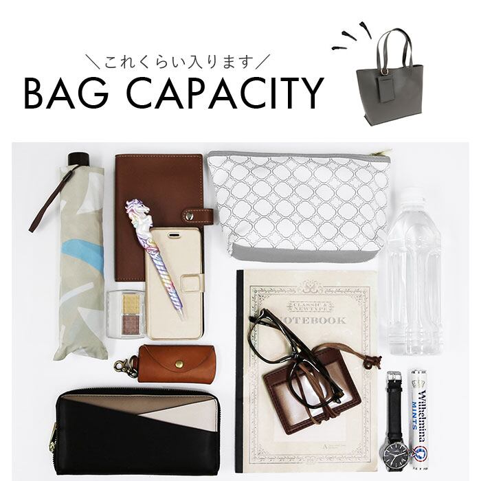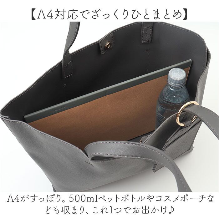 ・A4がすっぽり。500mlペットボトルやコスメポーチなども収まり、これ1つでお出かけ♪