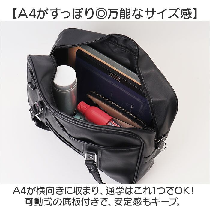 ・A4が横向きに収まり、通学はこれ1つでOK!可動式の底板付きで、安定感もキープ。