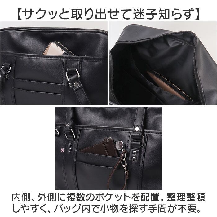 ・内側、外側に複数のポケットを配置。整理整頓しやすく、バッグ内で小物を探す手間が不要。