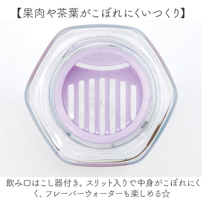・飲み口はこし器付き。スリット入りで中身がこぼれにくく、フレーバーウォーターも楽しめる☆