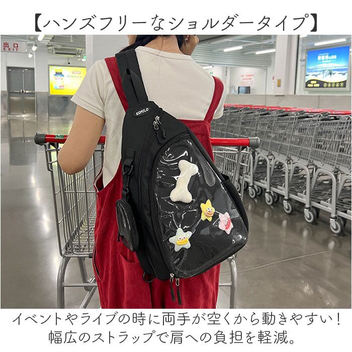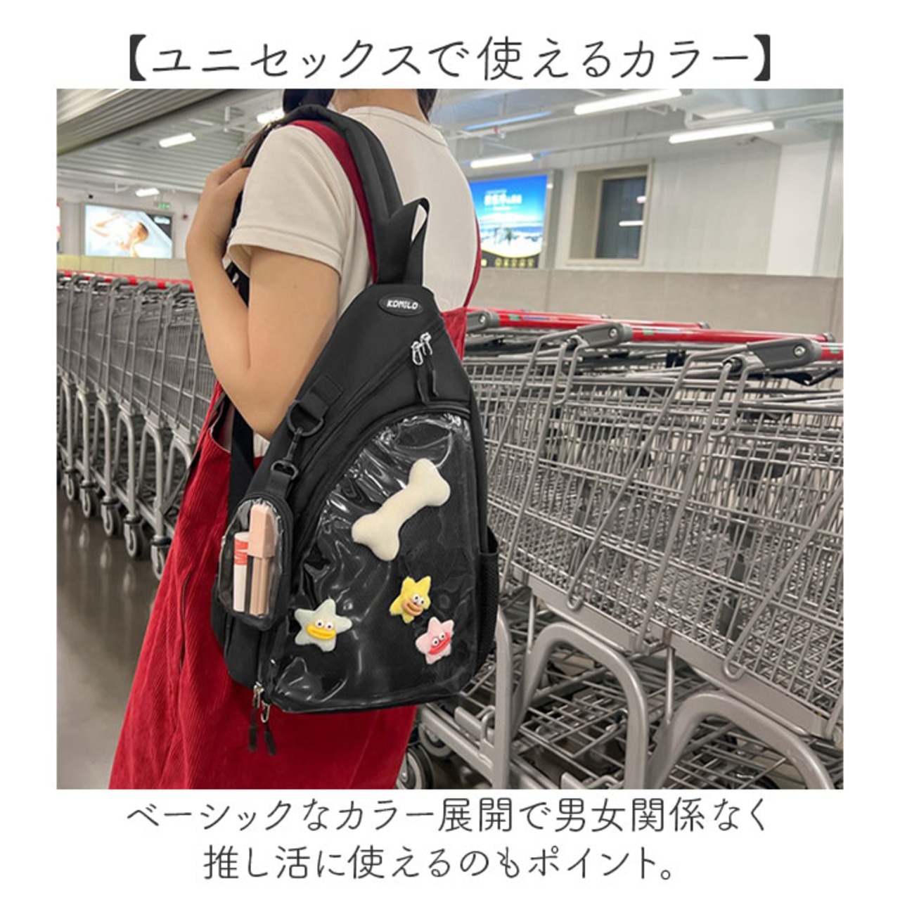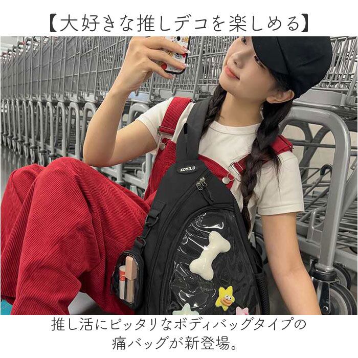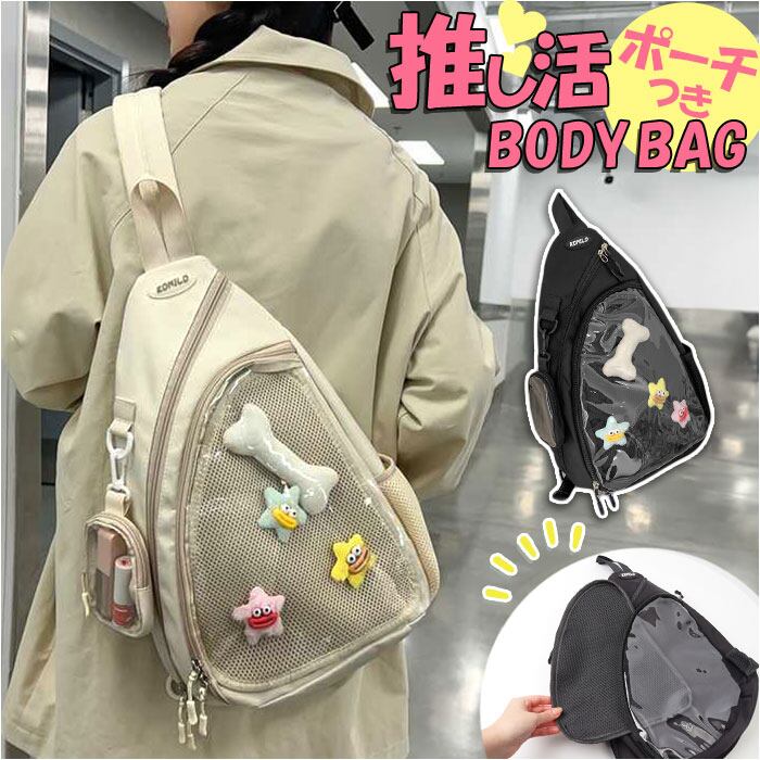 痛バッグ ボディバッグ ポーチ付き 推し活 通販 痛バ 推し活バッグ 推し活バック 推しバッグ 推しバック ボディバック クリアバック 痛ショルダー ビニールバッグ 透明バッグ 缶バッチ 推し クリア 透明窓 学生 かわいい 可愛い おしゃれ ギフト