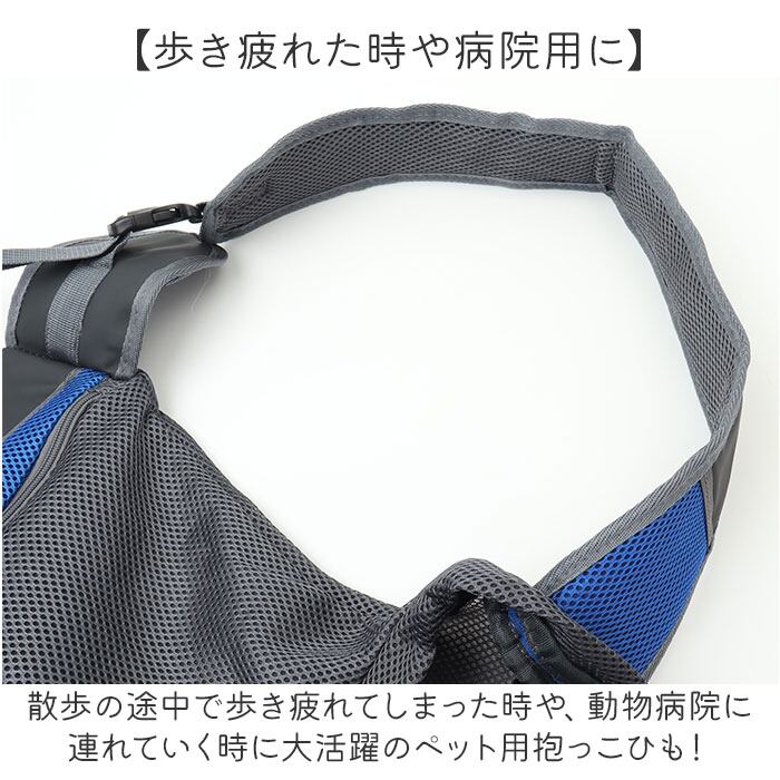 ・散歩の途中で歩き疲れてしまった時や、動物病院に連れていく時に大活躍のペット用抱っこひも!