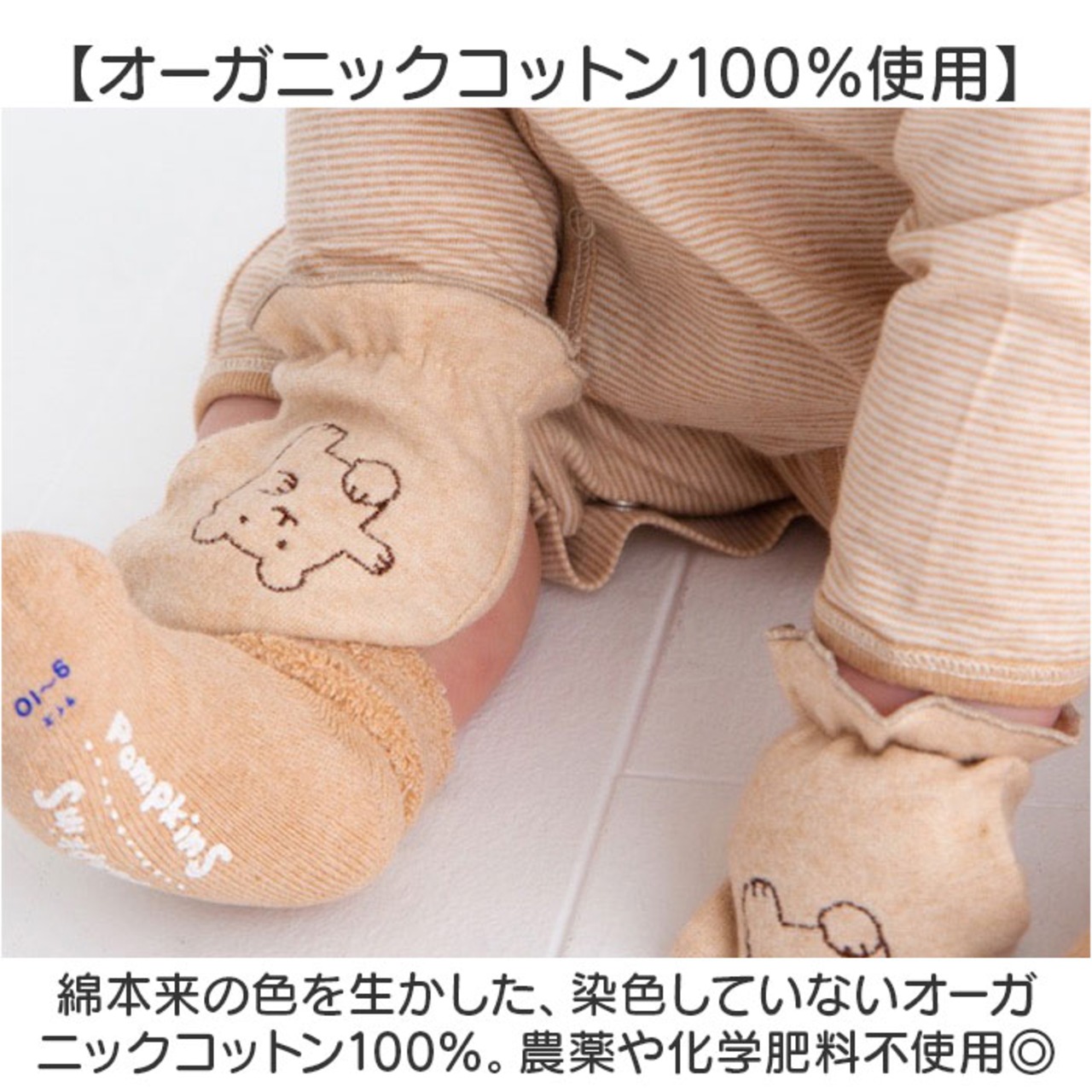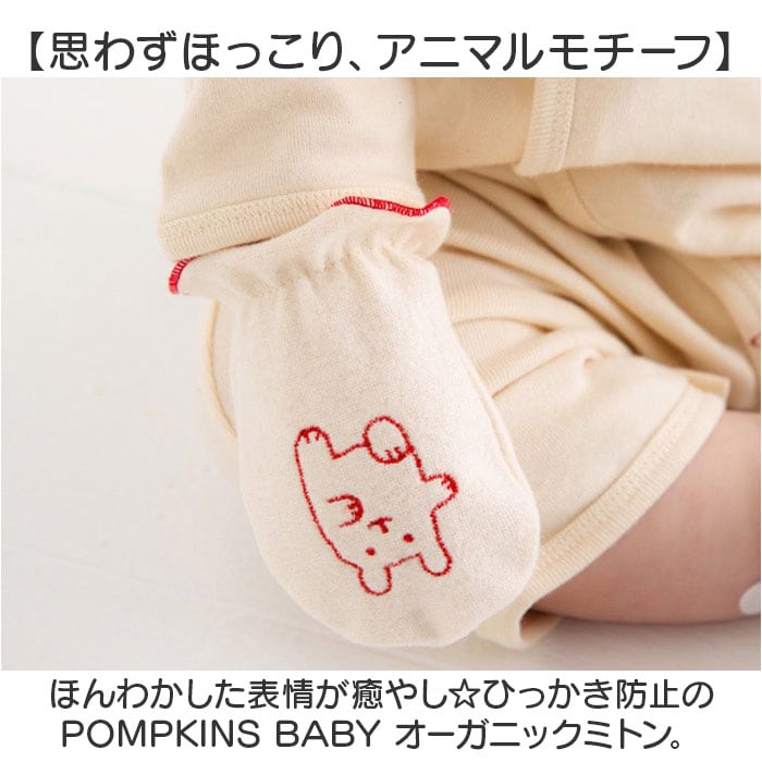 ・ほんわかした表情が癒やし☆ひっかき防止のPOMPKINS BABY オーガニックミトン。