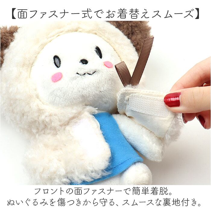・フロントの面ファスナーで簡単着脱。ぬいぐるみを傷つきから守る、スムースな裏地付き。