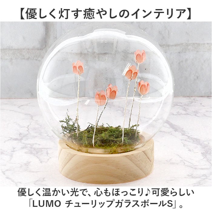 ガラスドーム フラワー 通販 チューリップ ガラスボールS LED ガラス ドーム お花 オブジェ 置き物 置物 おしゃれ かわいい オシャレ 可愛い LUMO ルーモ LEDイルミネーション インテリアライト ライト インテリア