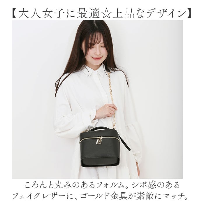 ・ころんと丸みのあるフォルム。シボ感のあるフェイクレザーに、ゴールド金具が素敵にマッチ。