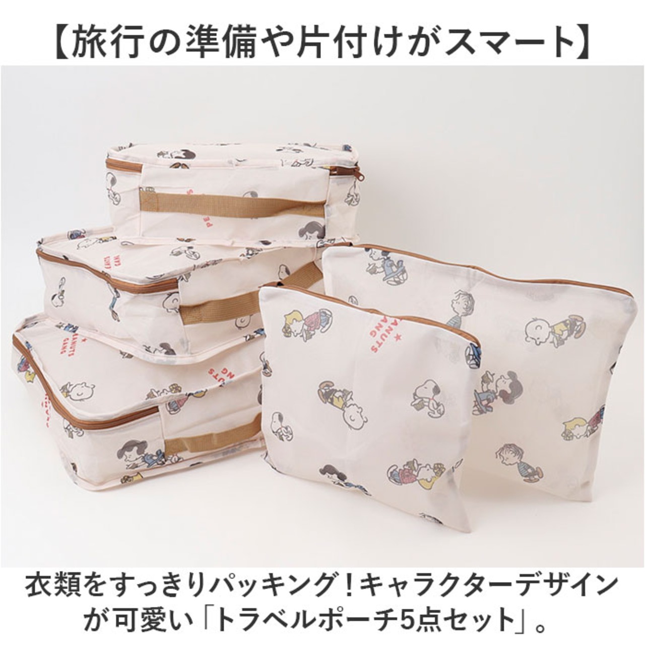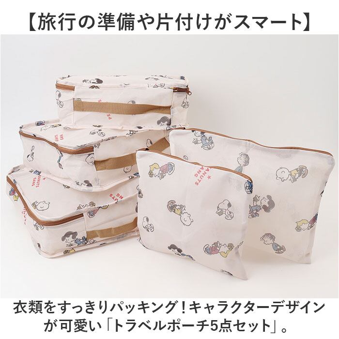 ・衣類をすっきりパッキング!キャラクターデザインが可愛い「トラベルポーチ5点セット」。