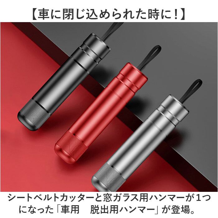 ・シートベルトカッターと窓ガラス用ハンマーが1つになった「車用 脱出用ハンマー」が登場。