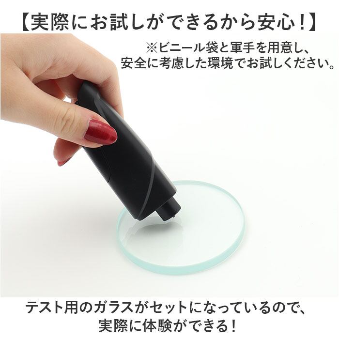 ・テスト用のガラスがセットになっているので、実際に体験ができる!