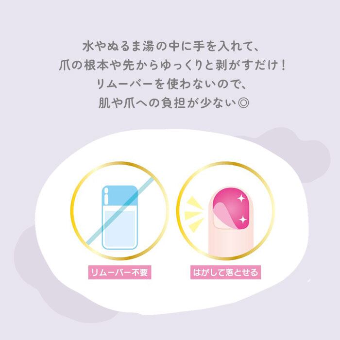 ・落とす時はリムーバー要らず◎水またはぬるま湯で、根本からゆっくり剥がすだけ。