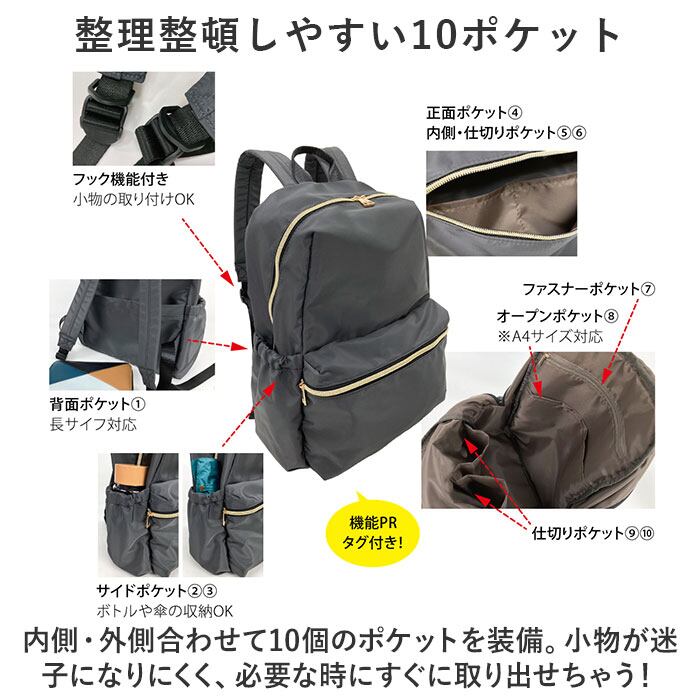 ・嬉しい機能が充実◎お出かけや通勤・通学などに最適な「高密度ポリ10Pリュック」が新登場。