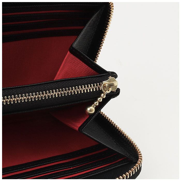 ・ラウンドファスナーを採用し、ガバッと大きく開く作りに。出し入れしやすくお会計もスムーズ。
