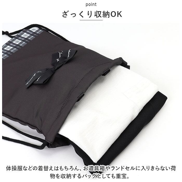 ・体操服などの着替えはもちろん、お道具箱やランドセルに入りきらない荷物を収納するバッグとしても重宝。