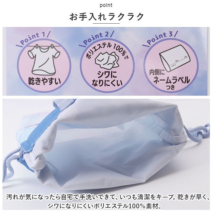 ・内側にネームラベルを装備。クラスと名前を記入できるから、お友達とお揃いでも大丈夫。