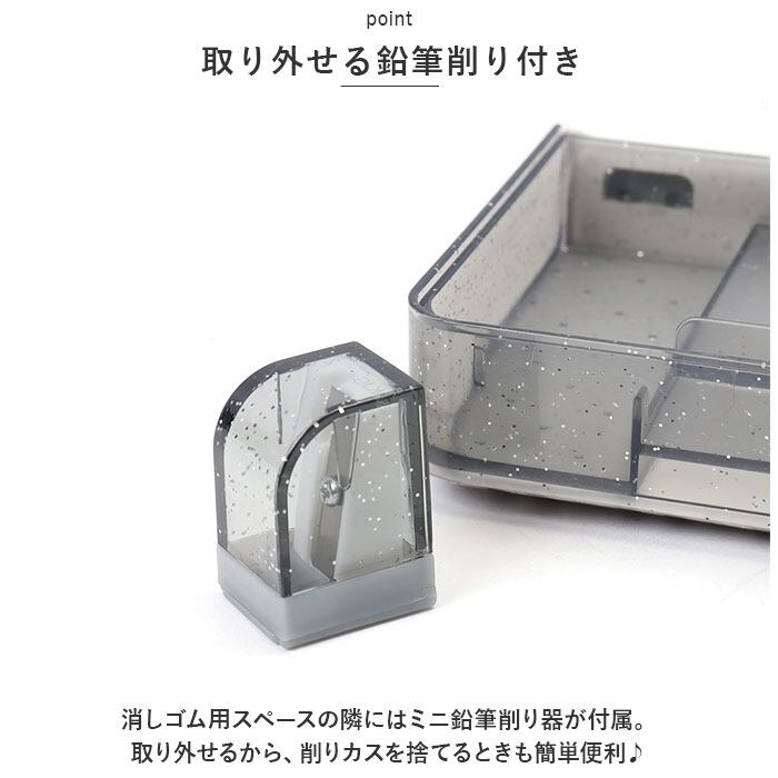・消しゴム用スペースの隣にはミニ鉛筆削り器が付属。取り外せるから、削りカスを捨てるときも簡単便利♪