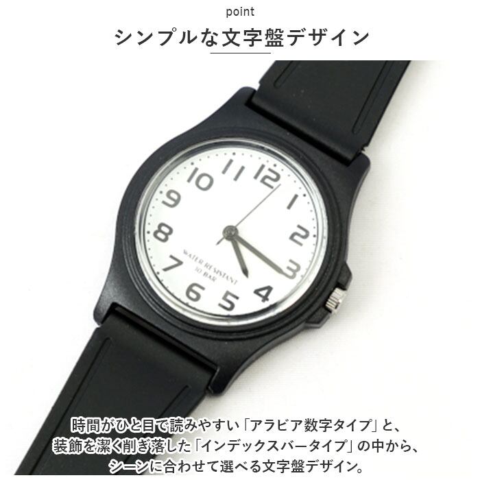 ・時間がひと目で読みやすい「アラビア数字タイプ」と、装飾を潔く削ぎ落した「インデックスバータイプ」の中から、シーンに合わせて選べる文字盤デザイン。