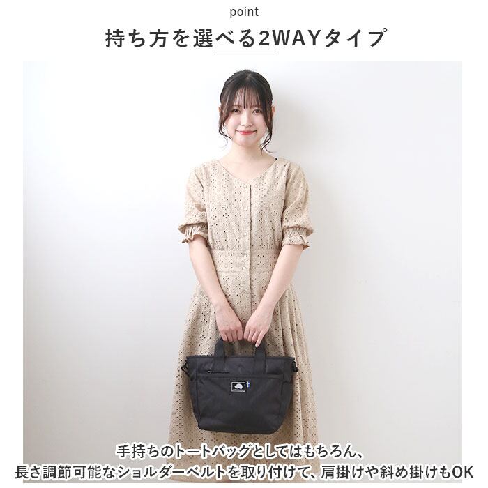 ・手持ちのトートバッグとしてはもちろん、長さ調節可能なショルダーベルトを取り付けて、肩掛けや斜め掛けもOK。