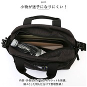 ・開口部はダブルファスナー式で、左右どちらからも開け閉め可能。中身がこぼれ落ちることなくプライバシーを確保。