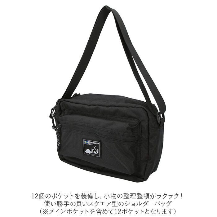 スカンジナビアンフォレスト ショルダーバッグ 251-KESF233 通販 SCANDINAVIAN FOREST アクティブスクエアショルダーバッグ スクエアショルダー レディース 多機能 ポケット 斜めがけ 大容量 撥水 はっ水 北欧 ハリネズミ シンプル 無地 ロゴ お出かけ 旅行 アウトドア