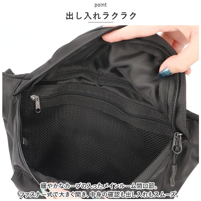 ・両手が空くので、レジャーやフェス、旅行など移動の多い時に便利。自転車に乗る際もバッグを身に着けたままでOK。